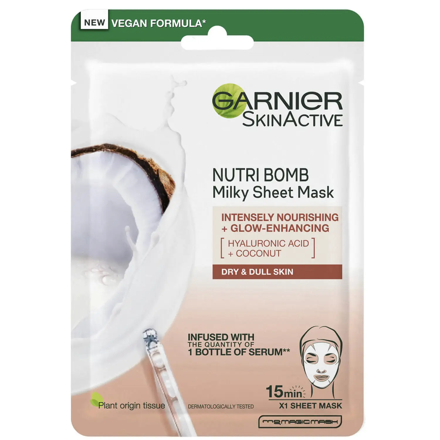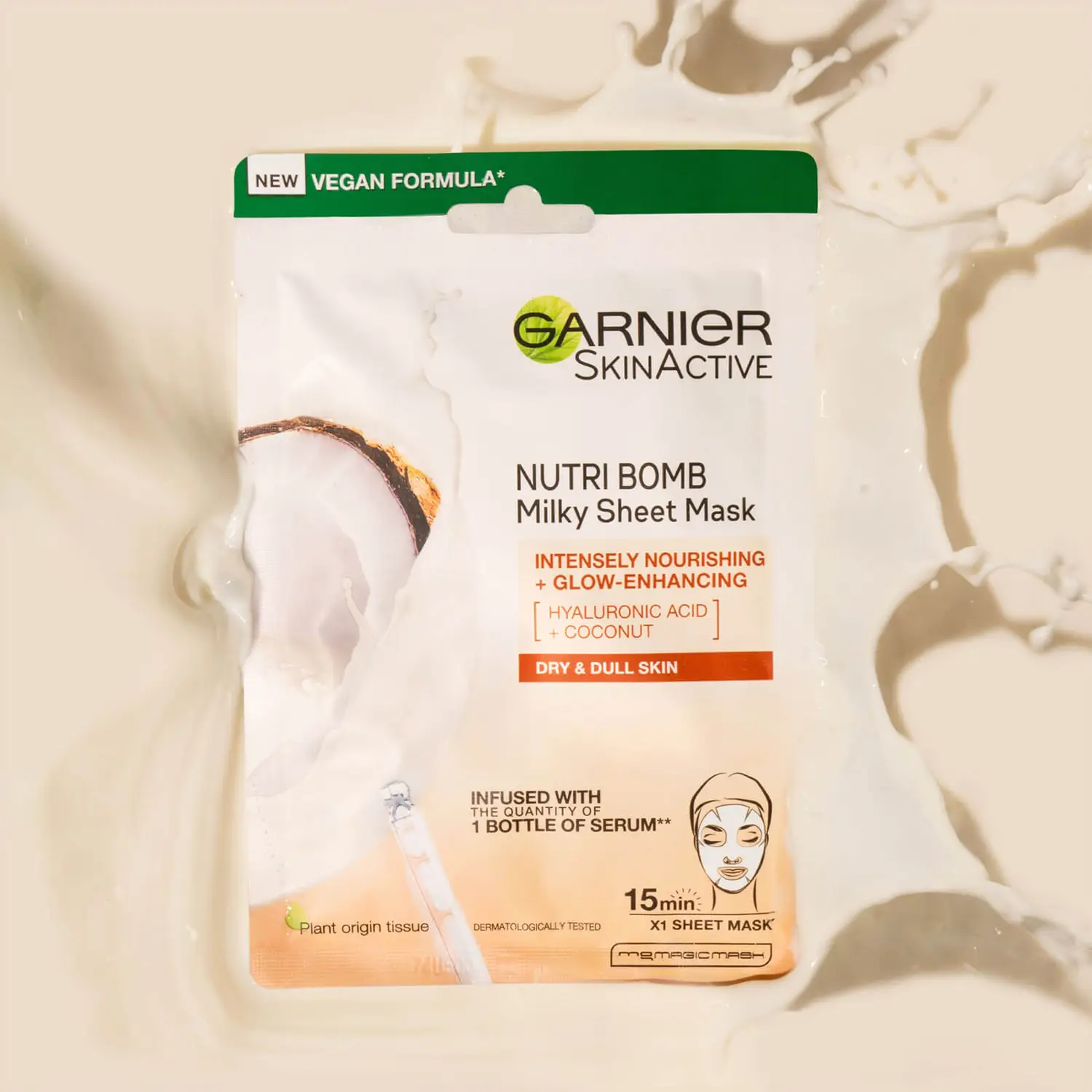 Ravivez votre peau déshydratée avec le Masque Tissu au Lait de Coco Nutri Bomb de Garnier.