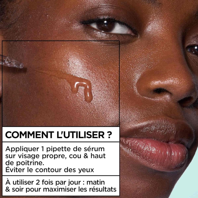 Adapté à une utilisation matin et soir, ce sérum peut être appliqué sur le visage, le cou et le décolleté pour une peau d’apparence plus fraîche et plus uniforme.